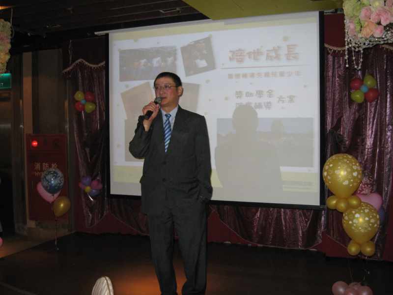 忠佳洋酒老闆周先生在慈善餐會開始時的歡迎致詞.