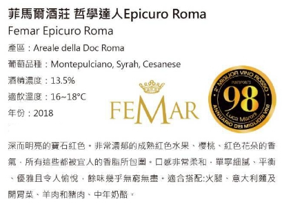 Epicuro是 FemarVini 的頂級品牌·也是Felice M 列的跳動核心。它將來自不同地區、不同面額的眾多葡萄酒組合在一起·並提供各種物超所值的葡萄酒:這些因素有利於其在歐洲和世界上一些最大和最重要的食品合葡萄酒分銷結構中的定位。受到希臘化和羅馬時代主要哲學流派之一的哲學家和創始人的啟發,伊壁鳩魯是致力於享樂主義至上之善:快樂的商業收藏。而快樂對於Felice Merge ,只能能酒傳遞,是我們生命中每一刻的“盟友”和“伴侶拯救者”·正如古希臘伊壁鳩魯這個詞的本義·Epicuro葡萄酒家族非常強大,這些都是具有強烈個性的葡萄酒,都帶有受保的原產地名稱和受保護的地理標誌。該系列的旗艦是精選的葡萄酒,每一種都有自己的個性和獨特的特徵。其中:來自輕微枯萎葡萄的